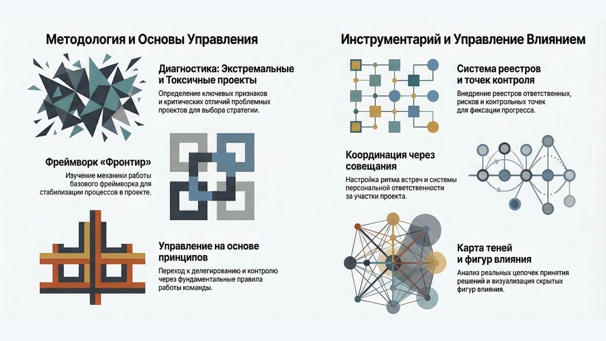 Сборка практических инструментов для оперативного управления проектами в условиях неопределенности, высокой нестабильности токсичной среды.